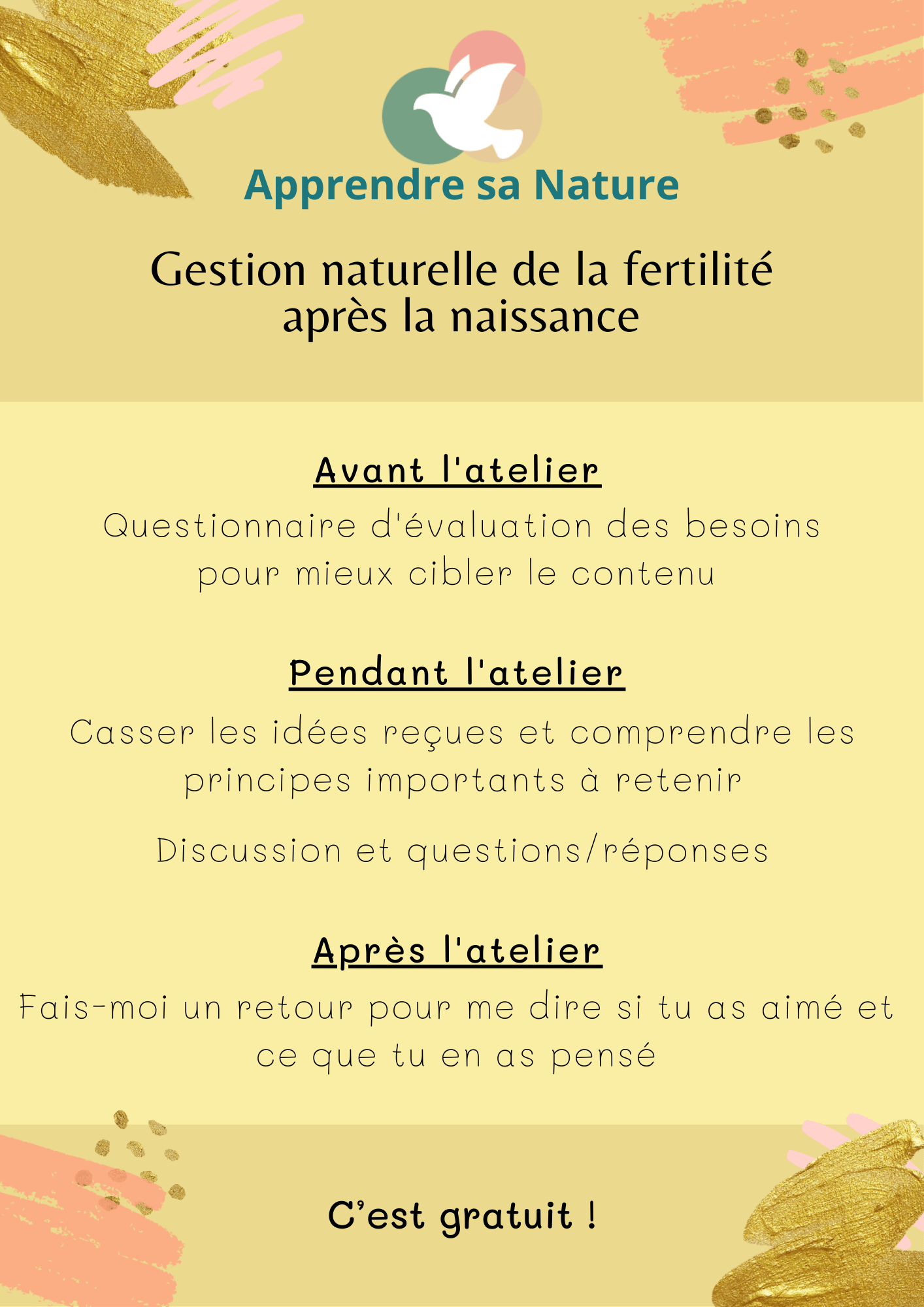 Je réponds à tes questions au sujet de la gestion naturelle de la fertilité, après une naissance , durant un atelier interactif en ligne.